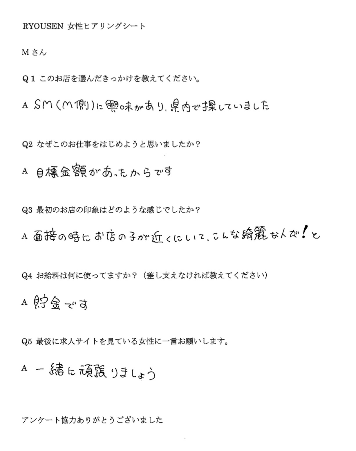 【在籍キャスト アンケート】